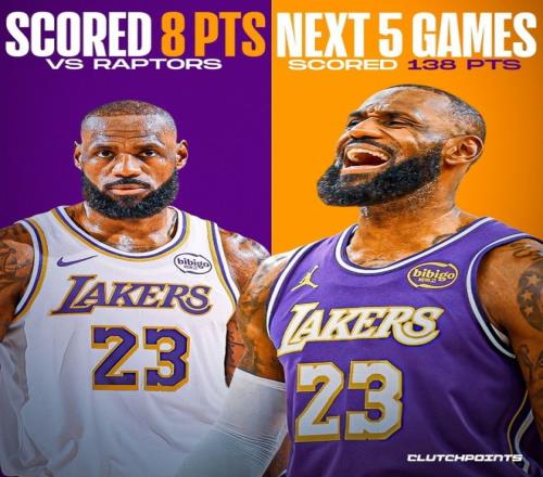 詹姆斯在8分助攻绝杀以后得五场比赛,总得分是138分,这在同期全联盟所有球员中能排第七。统计这个数据的媒体lakeshowcp感慨,詹姆斯在连续得分上双纪录终结以后,用只有詹姆斯才能做到的方式进行回应。这是绝对顶尖的反弹表现,展现出詹姆斯的竞技精神。哪怕在第23个赛季,詹姆斯依旧是现役统治力第一档的超巨。如果惹怒詹姆斯,那么会看到全力詹。